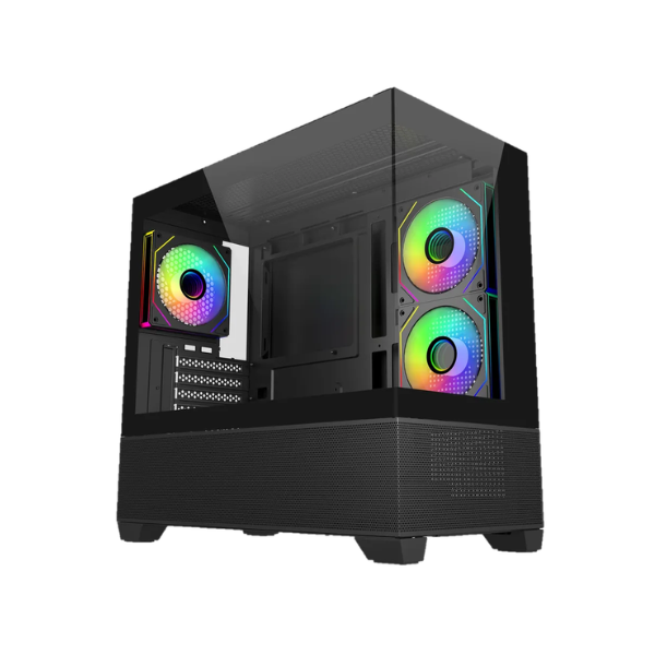 Su diseño optimizado favorece la ventilación interna, ayudando a mantener temperaturas adecuadas incluso en configuraciones exigentes. Es compatible con placas madre ATX y configuraciones modernas, ofreciendo el espacio necesario para un armado limpio y ordenado.