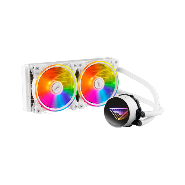 Equipada con un radiador de 240 mm y dos ventiladores ARGB de 120 mm, proporciona un equilibrio ideal entre potencia de enfriamiento y bajo nivel de ruido. Su rango de operación de 600 a 2000 RPM permite adaptarse dinámicamente a la carga del sistema, manteniendo temperaturas óptimas incluso en procesadores de última generación.