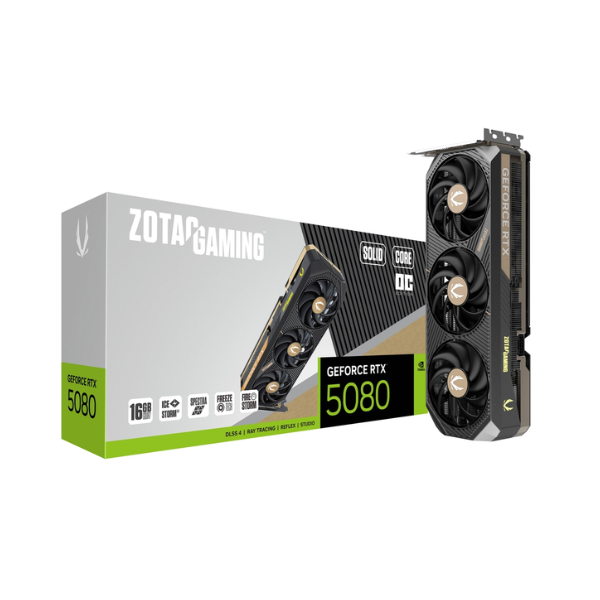 Tarjeta de Video Zotac Gaming GeForce RTX 5080 16GB Solid Core OC (PCIe 5.0, Triple Fan, RGB) [ZT-B50800J2-10P]
